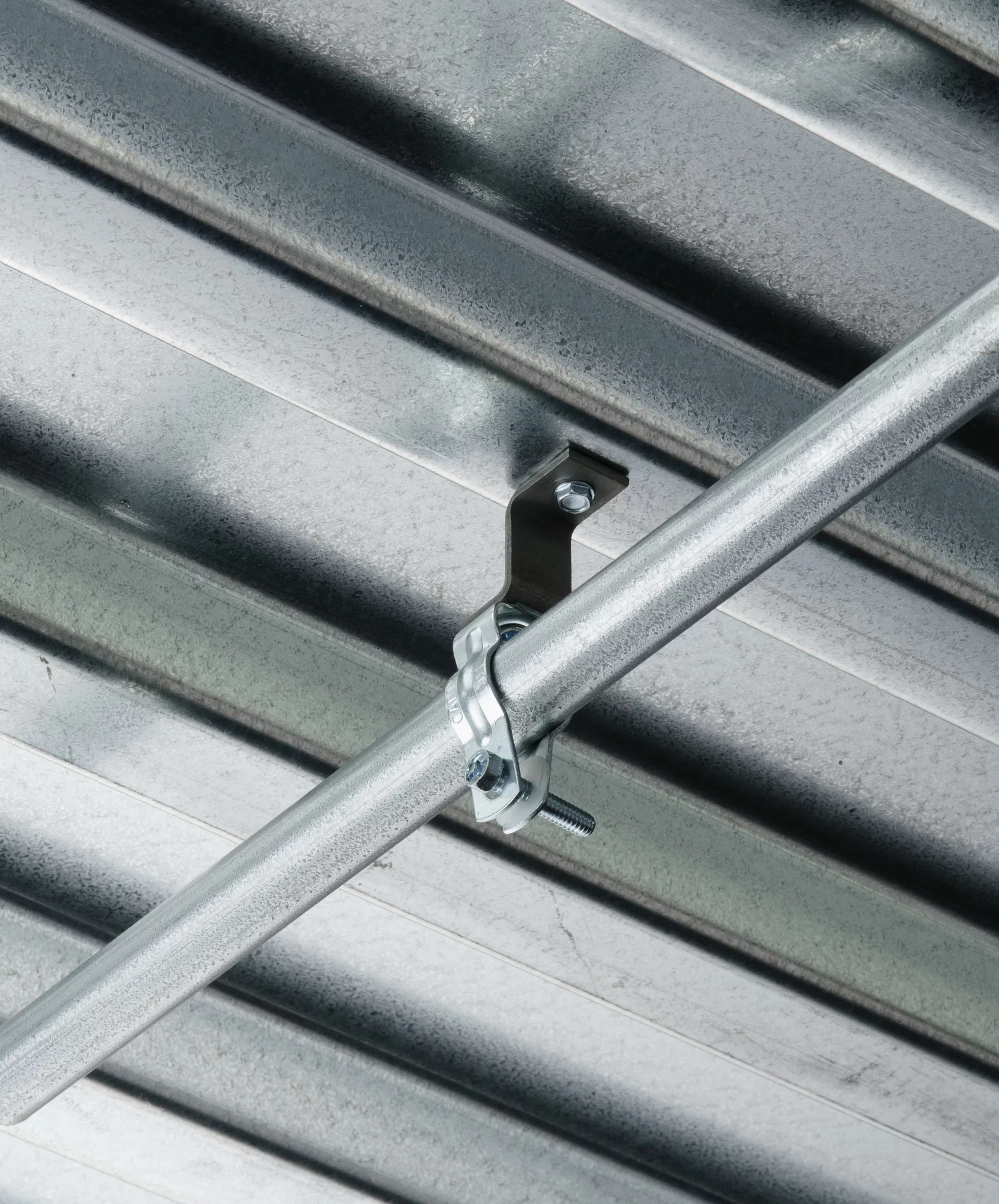 - Supports conduit or pipe 1-1/2" (38 mm) under the roof decking to prevent potential damage from nails or screws