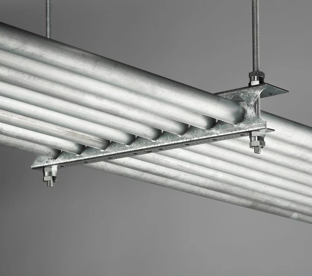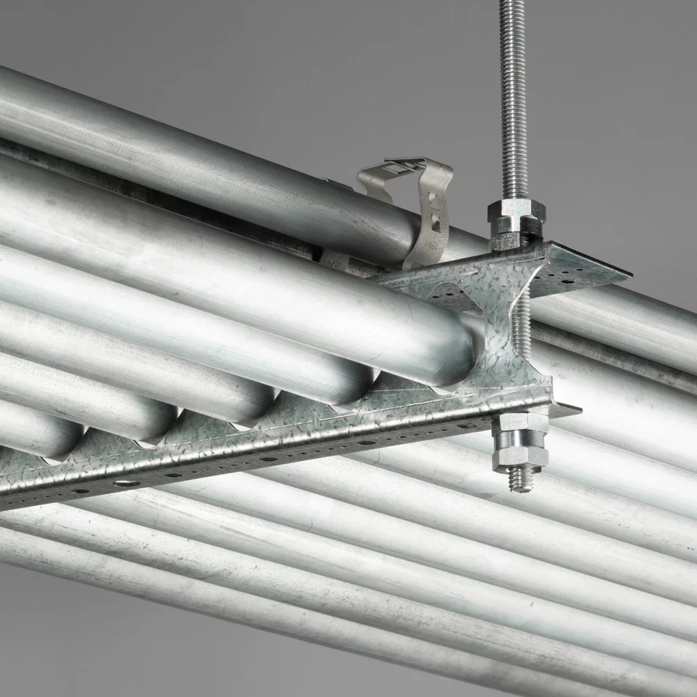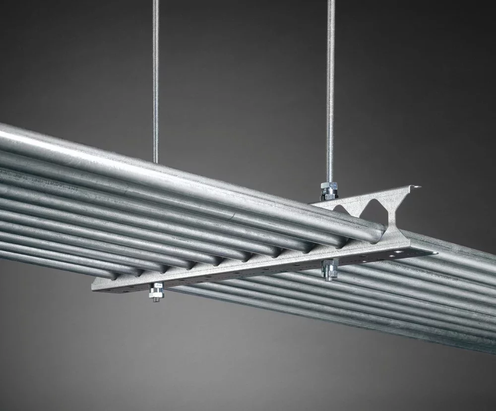 The nVent CADDY Conduit Trapeze CCT4 range is a fast and cost-effective method to install larger feeder circuits of conduit in overhead trapeze installations. The CCT4 series reduces installation time and material cost by eliminating the need for traditional fasteners, making it an ideal solution for contractors looking to maximize installation efficiency.