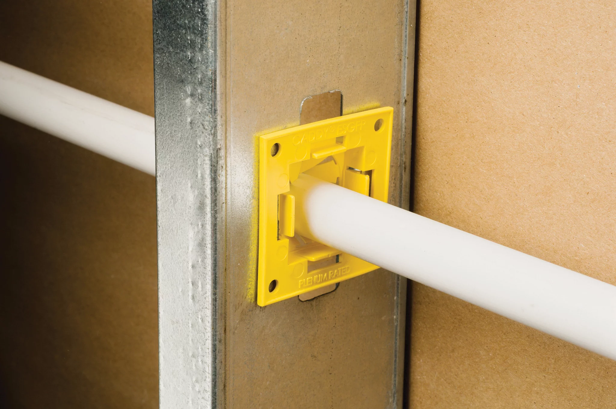 - Provides 360° protection of conduit, plumbing and fire sprinkler plumbing in metal studs