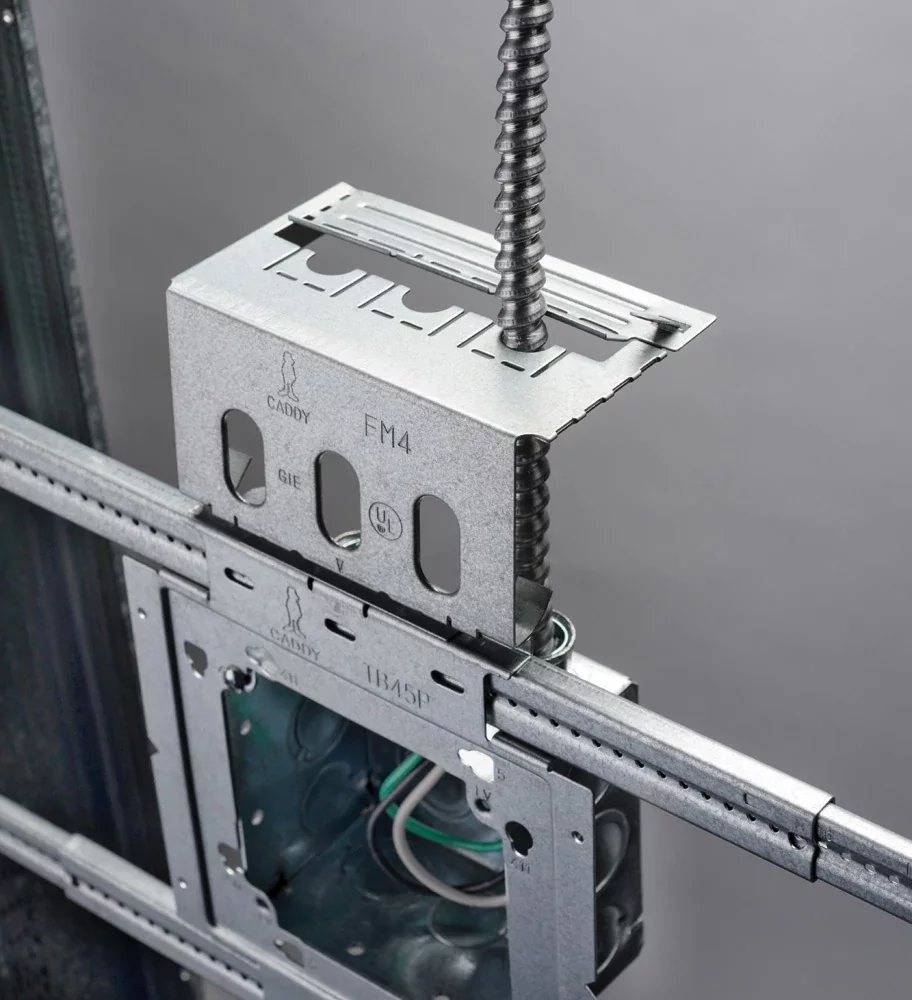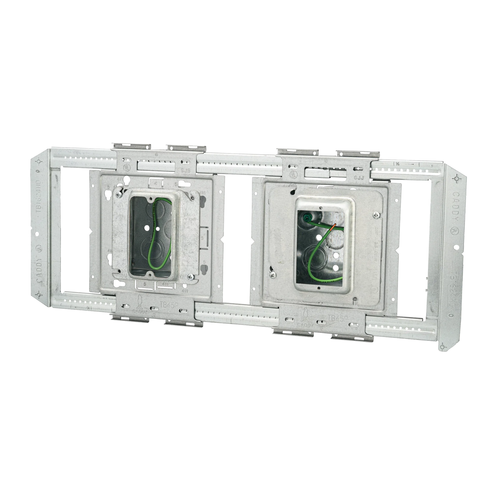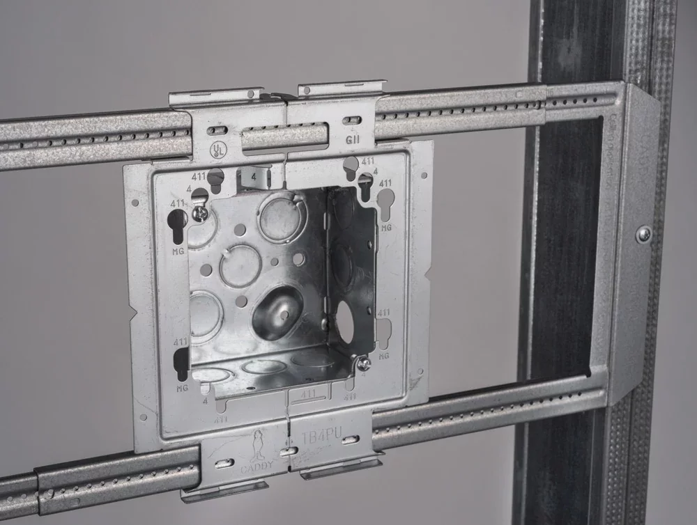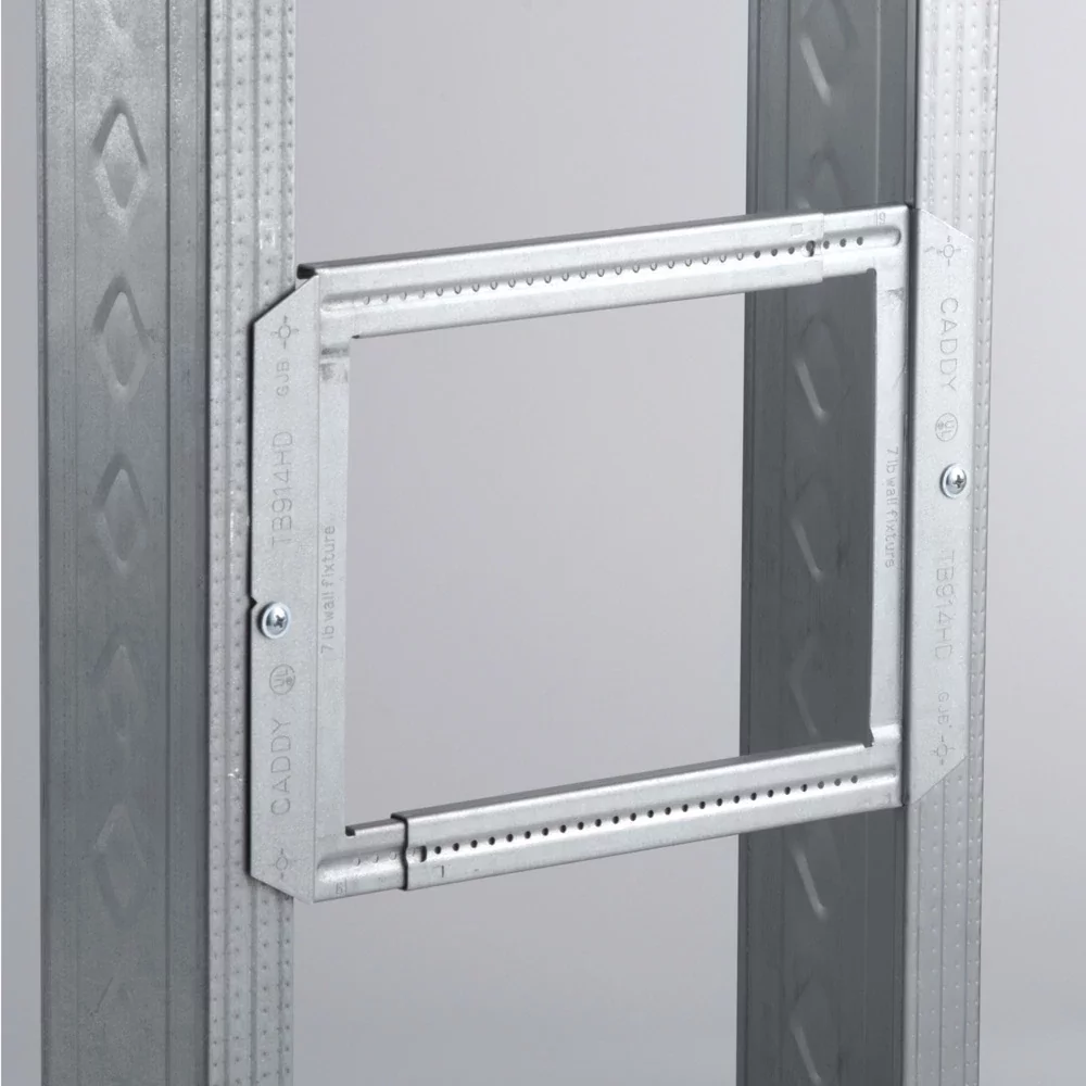 The nVent CADDY Heavy Duty Telescoping Bracket provides ultimate stud-wall flexibility, saving time on the job. This versatile box mounting system with base frame telescopes to the appropriate stud distance to allow for easy adaptation on any job site.