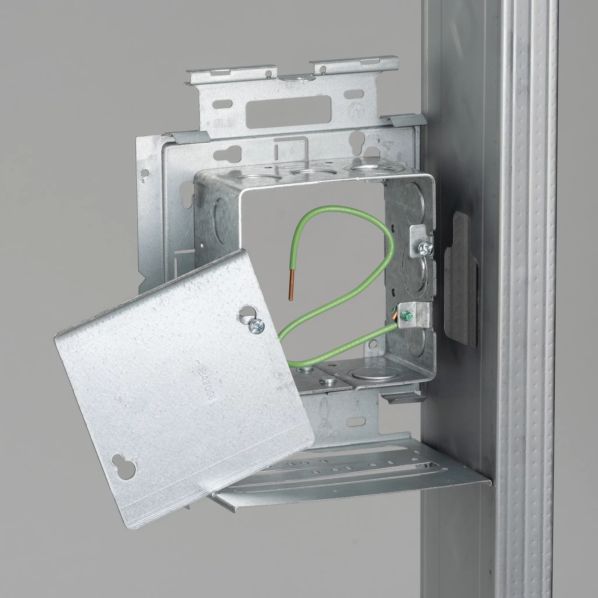 - Box Lock tab secures box to bracket during assembly and allows mud ring to be removed following installation on the stud, providing easy frontal access to the inside of the box