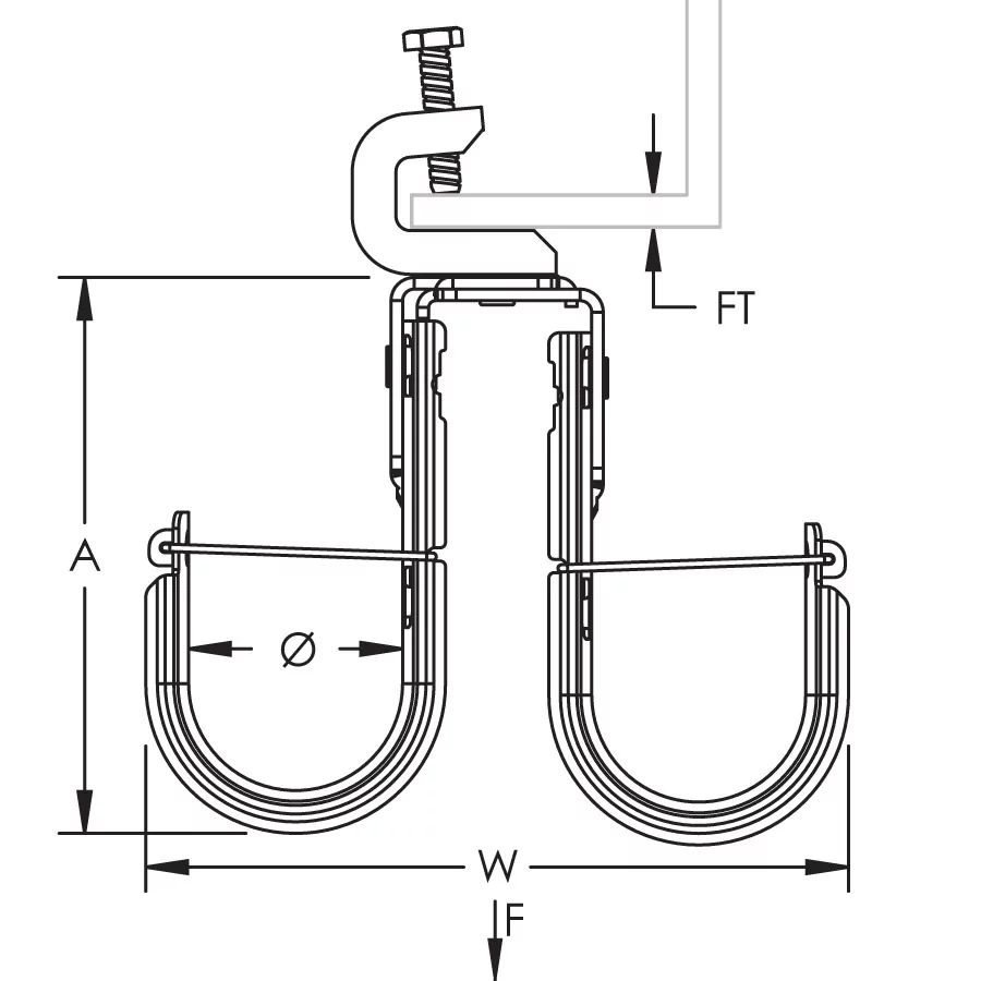 nVent CADDY Cat HP Double J-Hook with BC200 Beam Clamp, Swivel