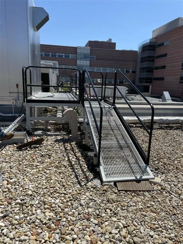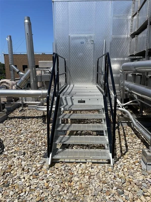 - Walking surfaces with serrated tread provides maximum slip resistance and drainage