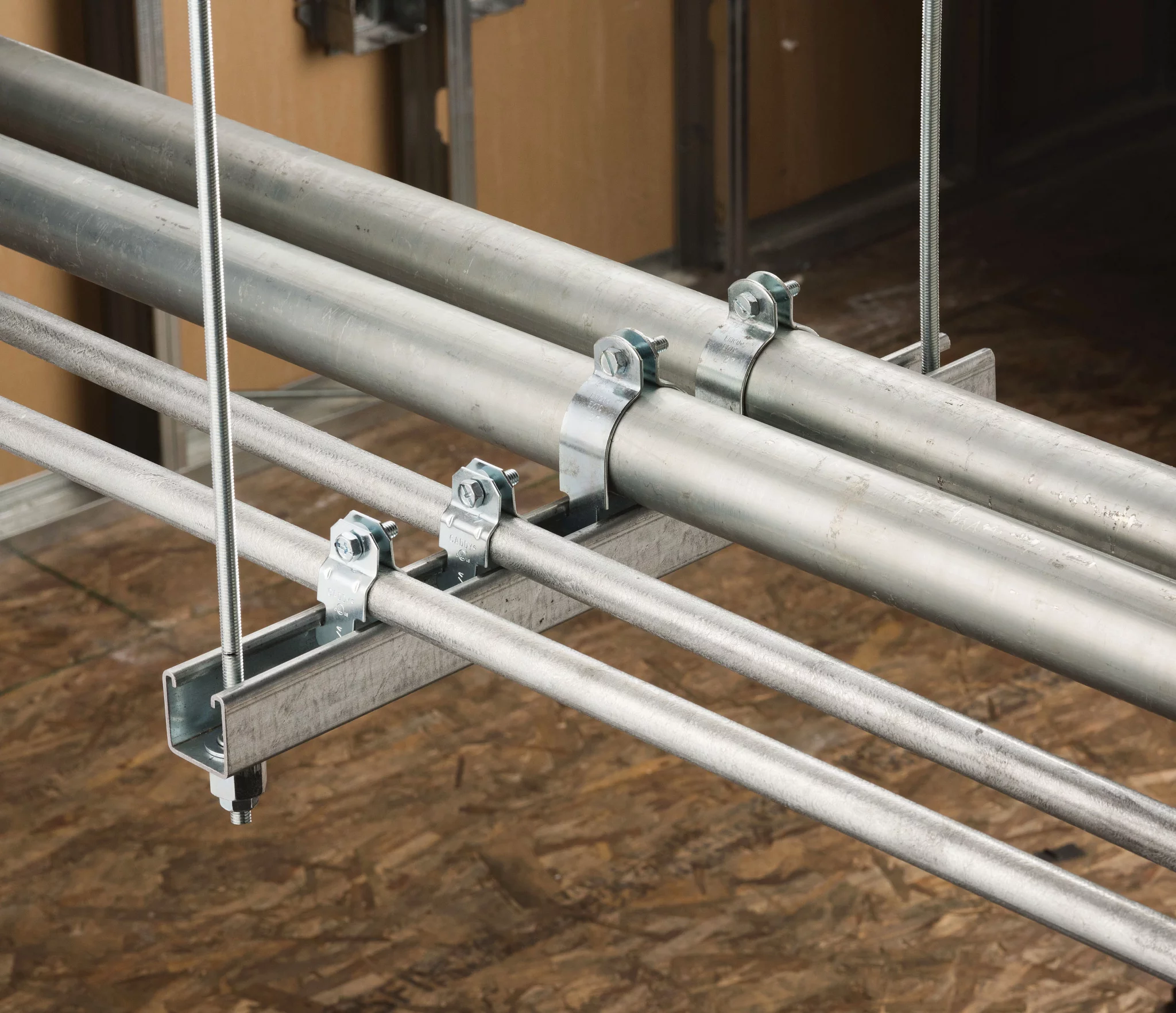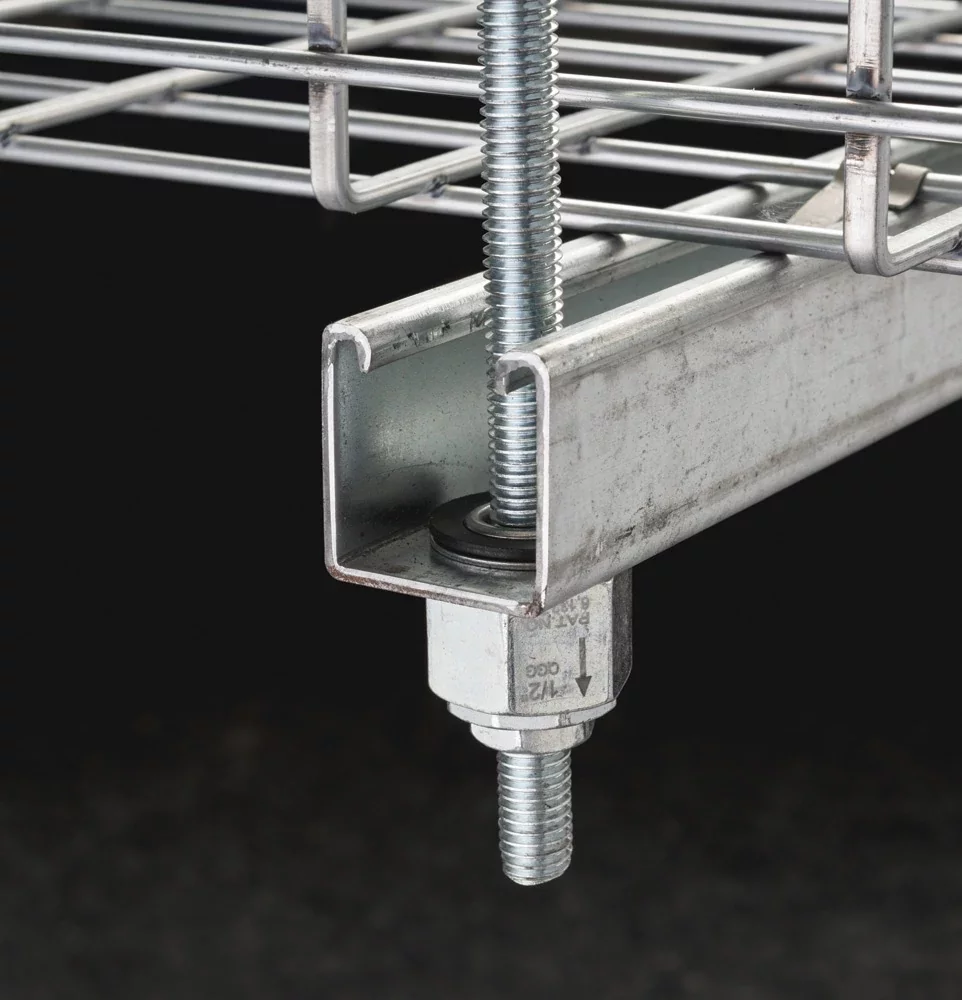 nVent CADDY Rod Lock Prefab Strut Assemblies increase overall productivity and job site safety when working with trapeze and threaded rods. With our innovative nVent CADDY “push-to-install” technology, quickly create, install and adjust multi-level trapeze assemblies by simply pushing threaded rod through the mounting hole and setting into place without the need for tools.