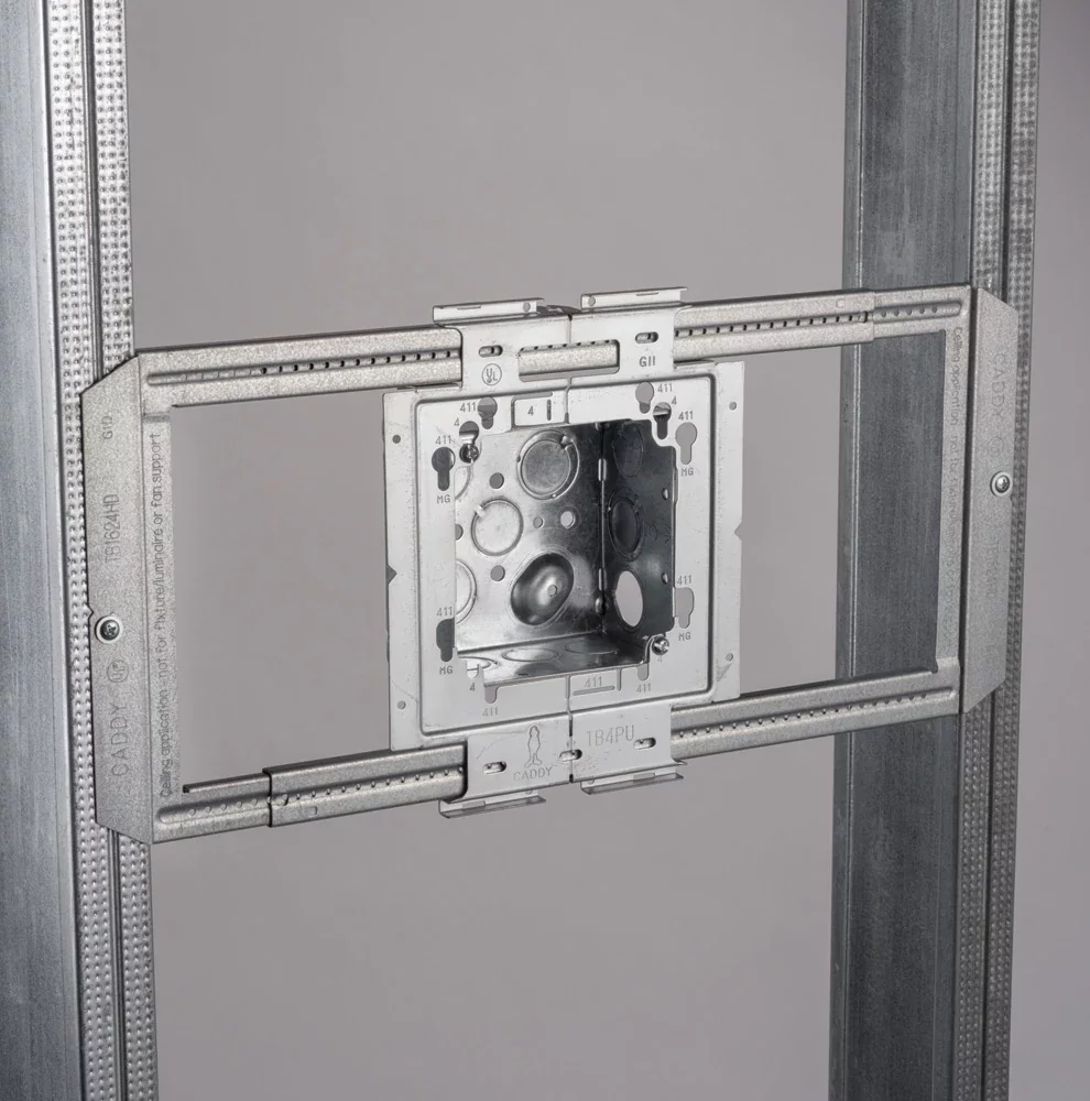 - Box lock tab secures box to bracket during assembly and allows mud ring to be removed following installation on the stud, providing easy frontal access to the inside of the box