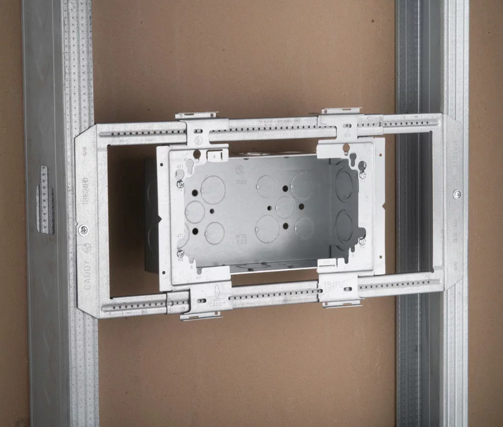 - Accepts vertically or horizontally mounted single and double gang adjustable mud rings