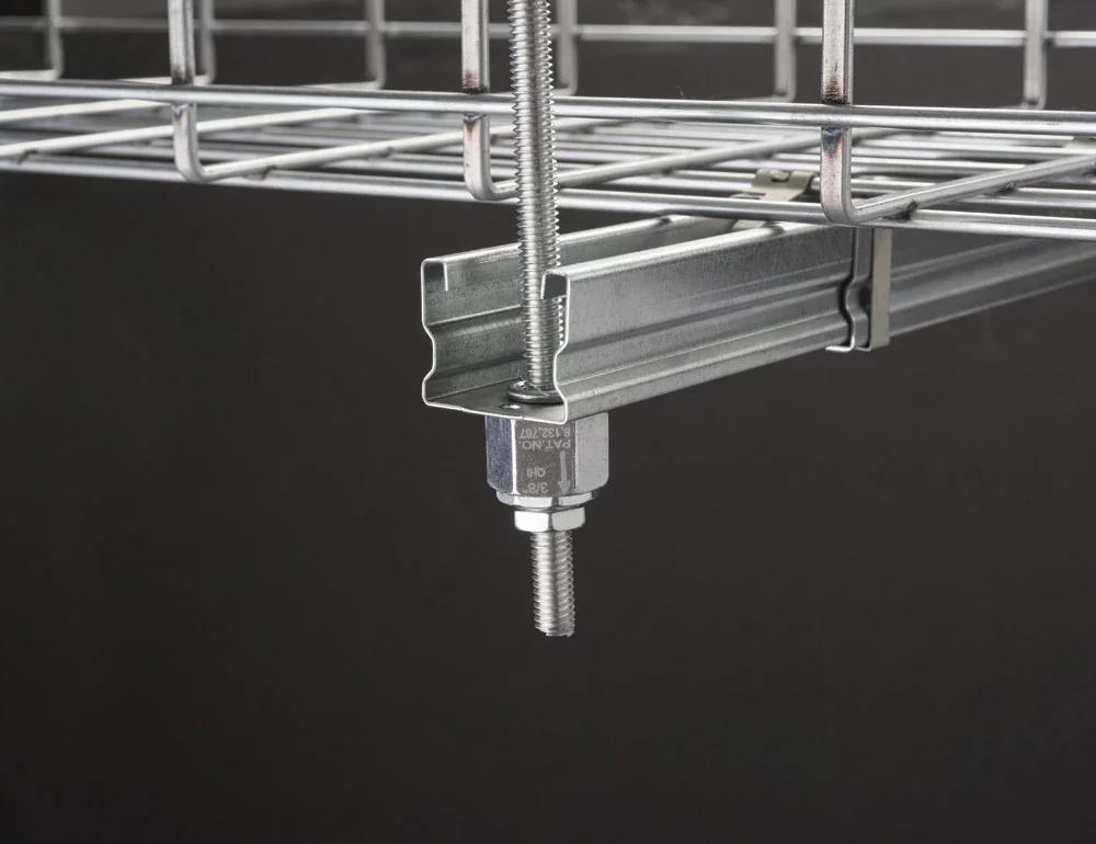 - Captive threaded nuts enable fastening to threaded rod supports without loose parts