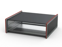 - Case for 19" components (guide rails) or proprietary components (mounting plate)
