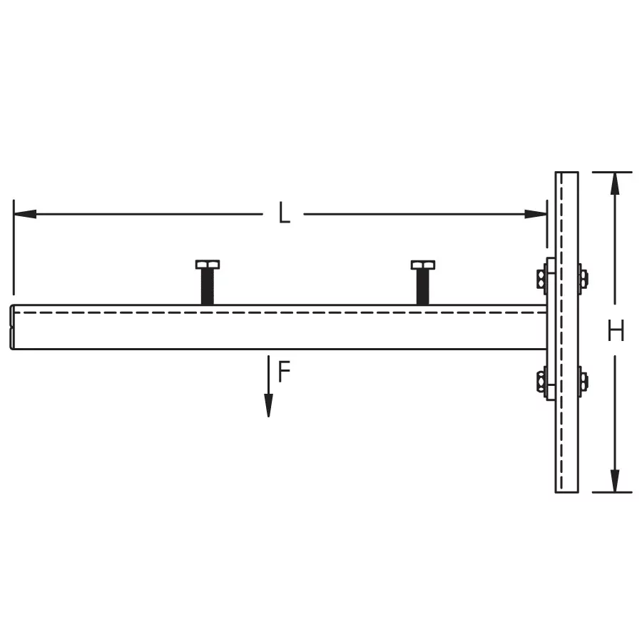 - Kit of two strut cantilever brackets, two channels and all fixings (excluding fixings to structure)