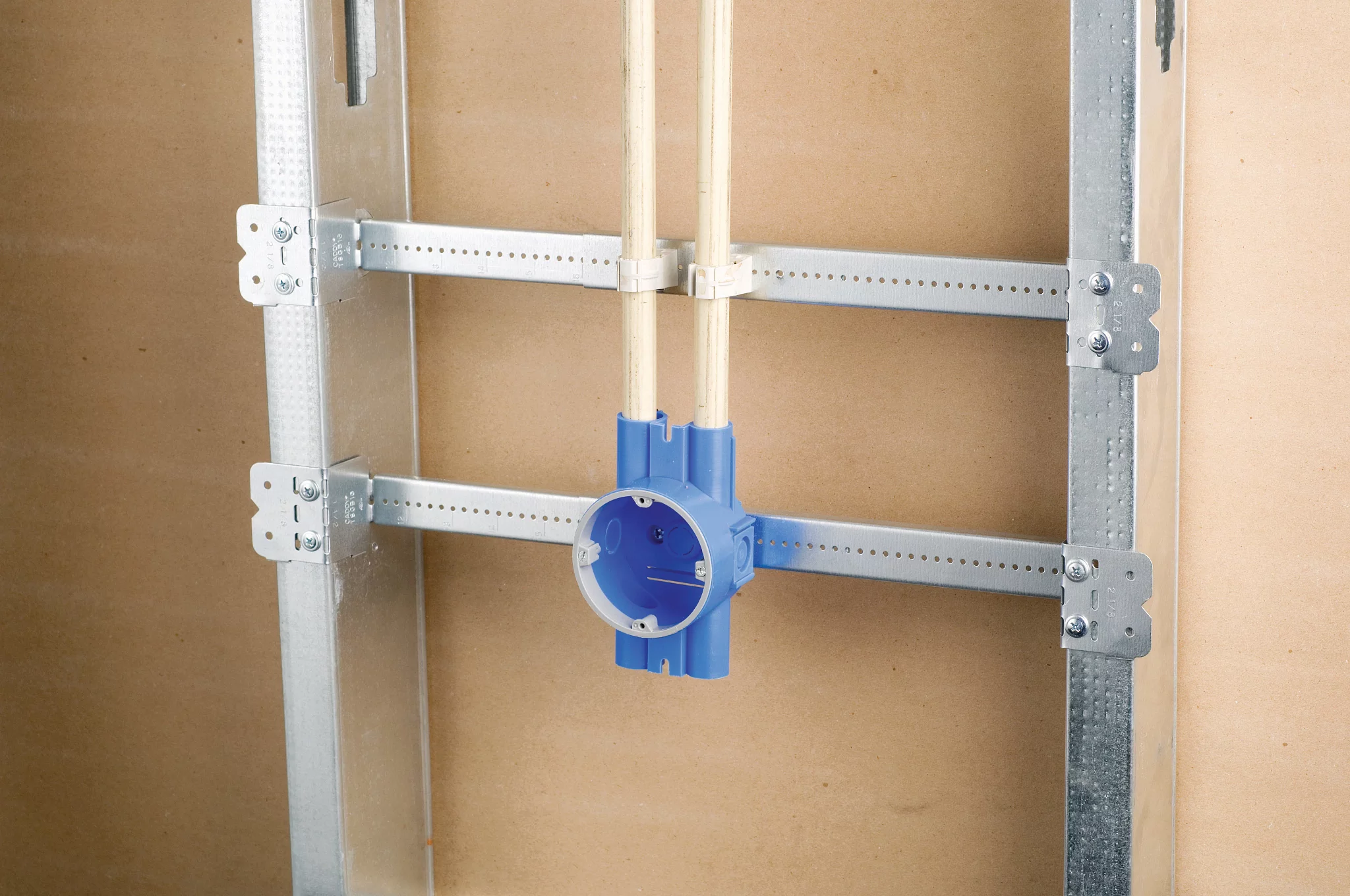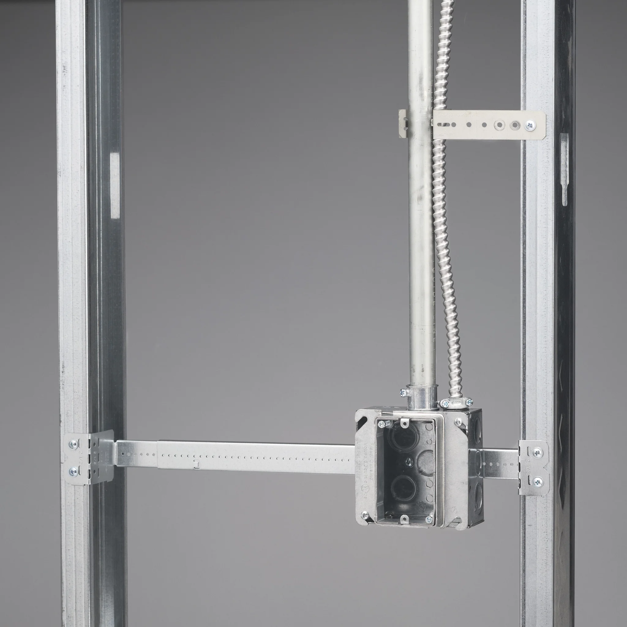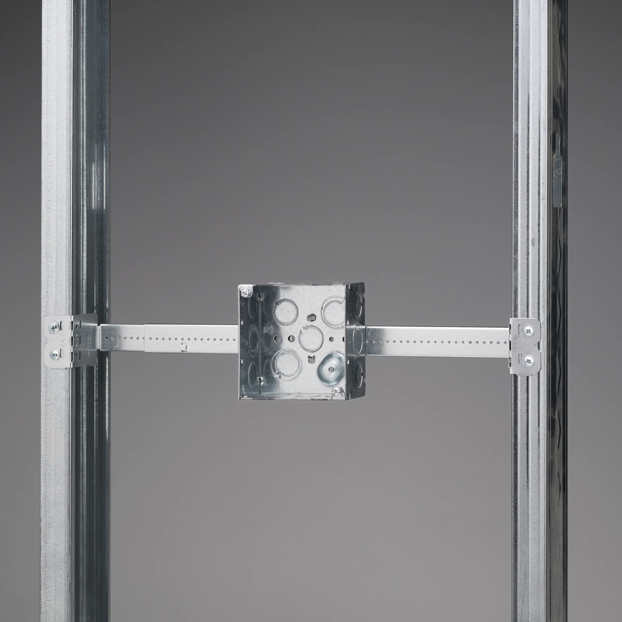 - Improved design with stamped inch markings and pilot holes accelerates precise box conduit mounting between studs