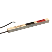 Modular, compact PDU with many function elements. Using a 1 U by 1 U aluminum chassis the PDU can easily be integrated in a rack with UTE outlets.