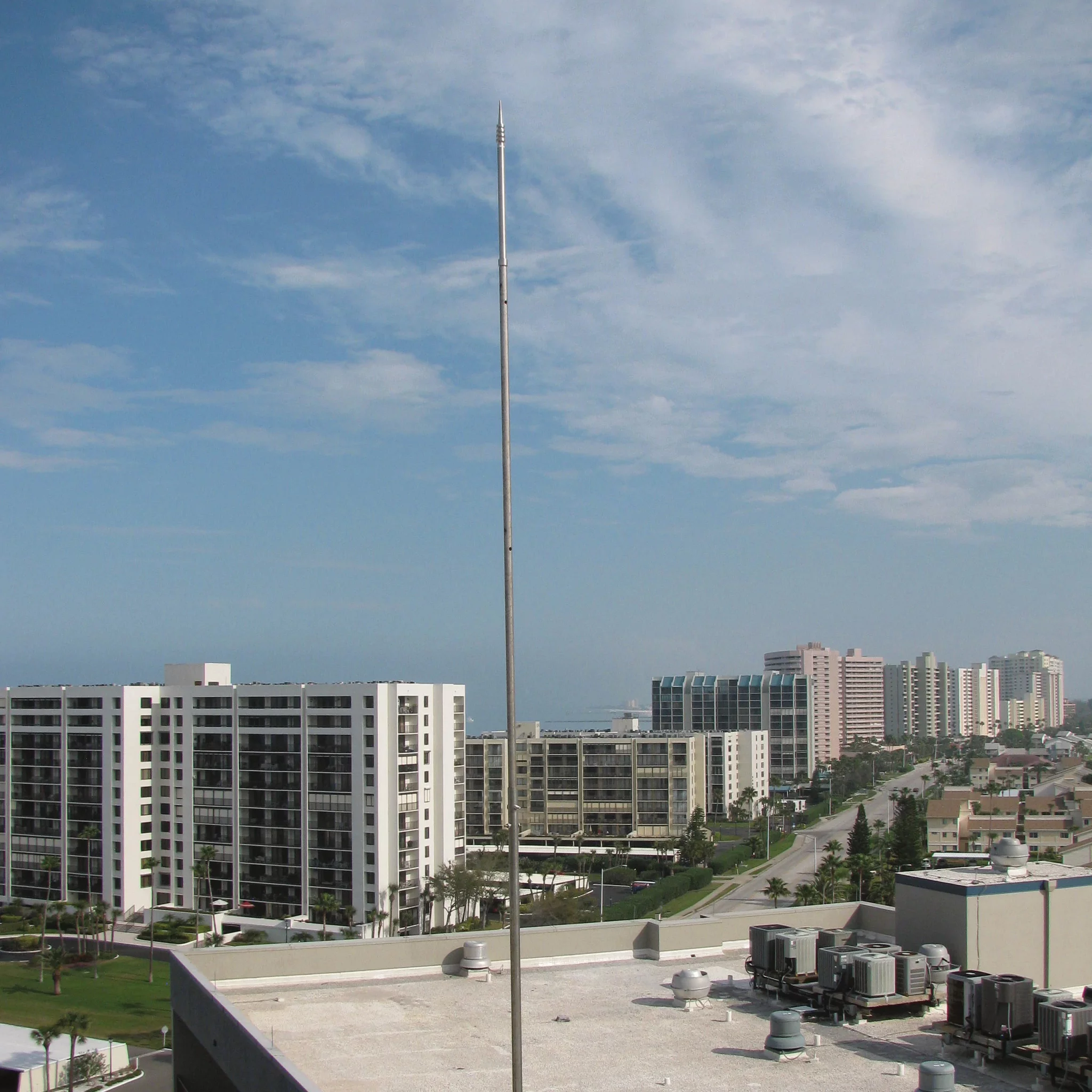nVent ERICO INTERCEPTOR ESE i-Series generates controlled magnitude and frequency pulses at the tip of the terminal during high static fields prior to a lightning discharge. This enables the creation of an upward leader from the terminal that propagates toward the downward leader coming from the thunder cloud.