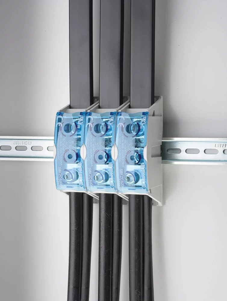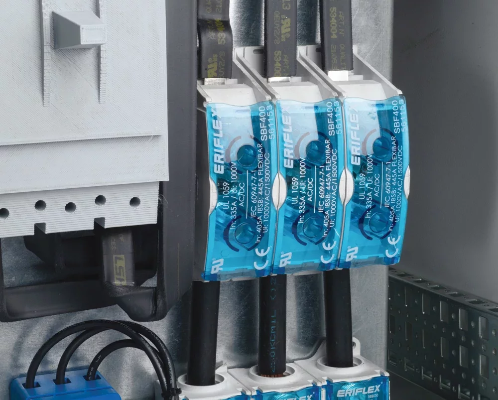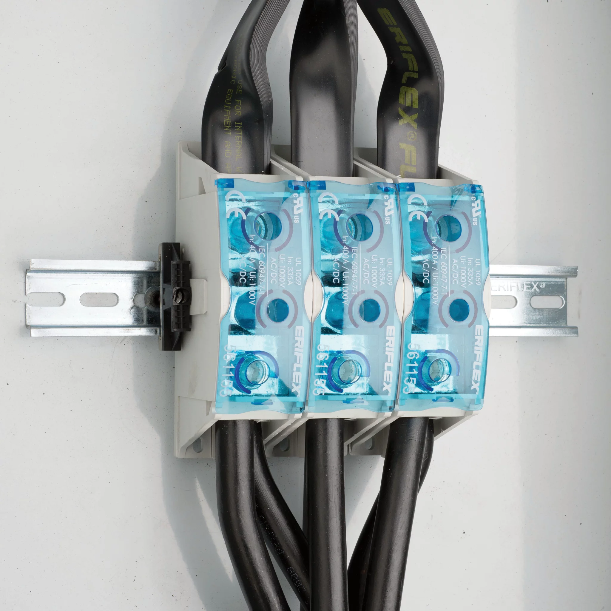nVent ERIFLEX Power Blocks are the main DIN mounted output/input devices for connection between primary and secondary switchboard, or main input/output connection for machine or industrial equipment (such as invertor, air conditioning machines, etc.). The high short circuit rated large cross section blocks offer time savings and reliability in every panel configuration. The complete Power Blocks range offers multiple connection types with up to four cables, nVent ERIFLEX Flexibar Advanced, or IBSB Advanced power braids.