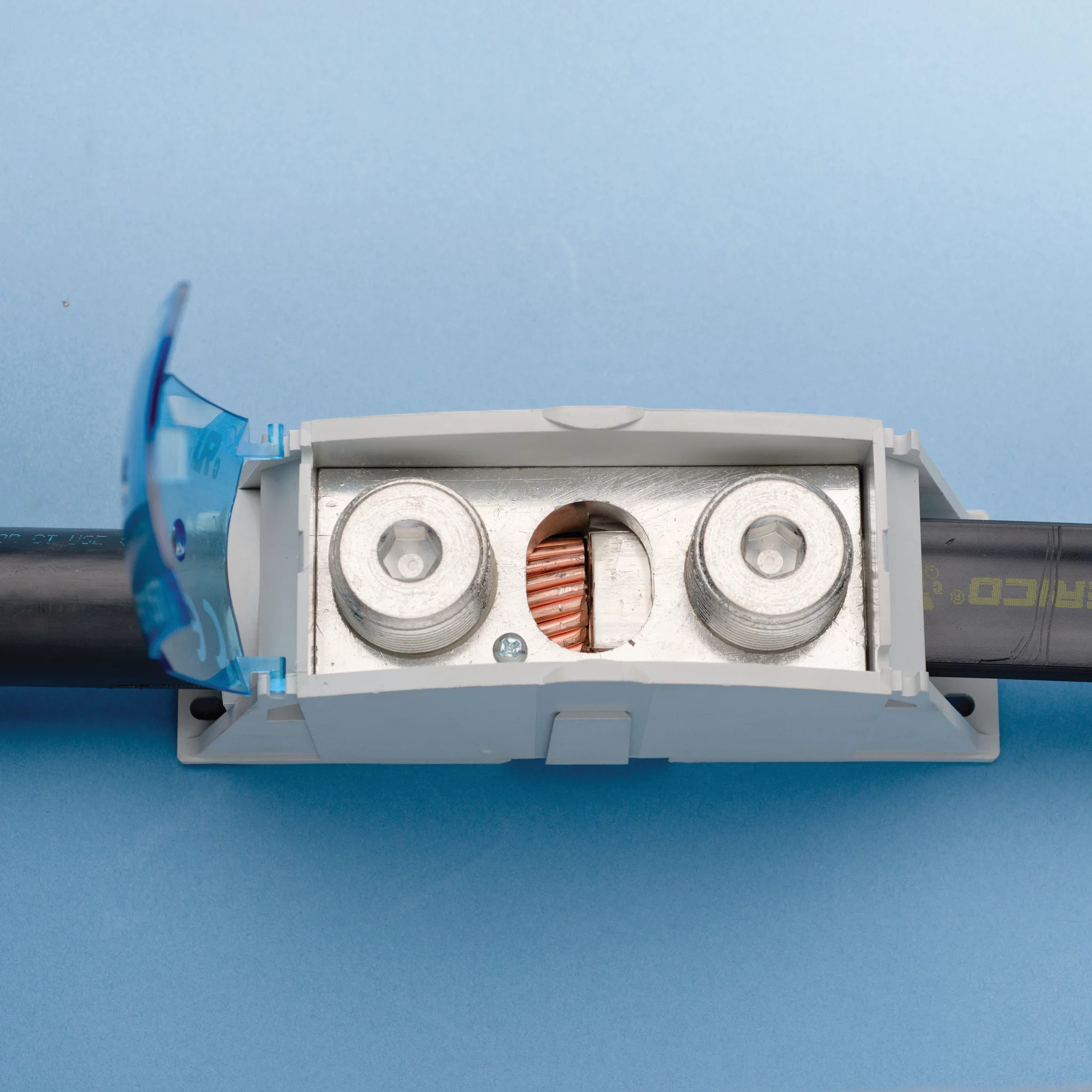- Tinned copper or aluminum block allows for copper or aluminum conductor direct connections, or using ferrule