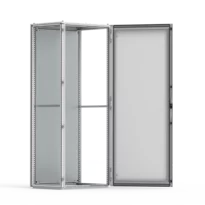 - Door: Mounted with four hinges allowing left or right hand opening. Including door frame with 25 mm hole pattern.