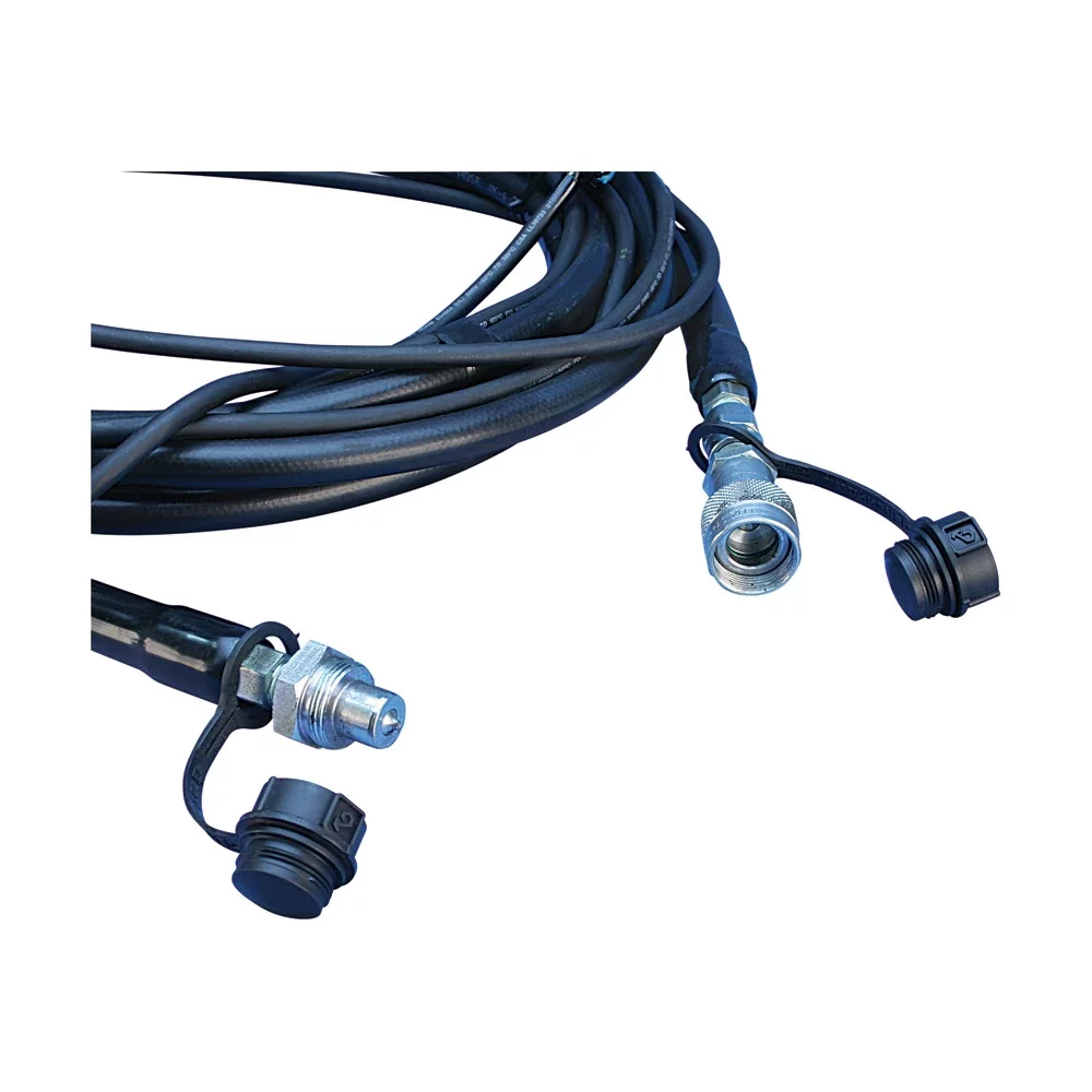 The hydraulic hose assembly is specifically designed to both hydraulically and electrically connect the nVent LENTON Quick Wedge pin driver to the hydraulic unit.