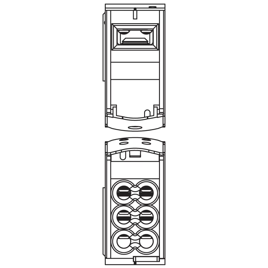 Single Pole Dist. Block, 500 A IEC, Flat Conductor Line, 6 Cables Load, Aluminum