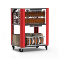 Designed for high capacity and a small footprint, the two-level, mobile Cable Storage Frame offers a convenient, flexible way to store and spool additional wiring to feed PWA6000 and PWA5000 Wire Processing Center machines. It also helps save spool-switching time, while optimizing the panel wiring process.