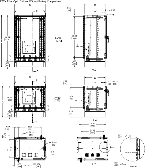 - Base of cabinet has a 5.00-inch (127-mm) high aluminum mounting plinth to allow for cable alignment
