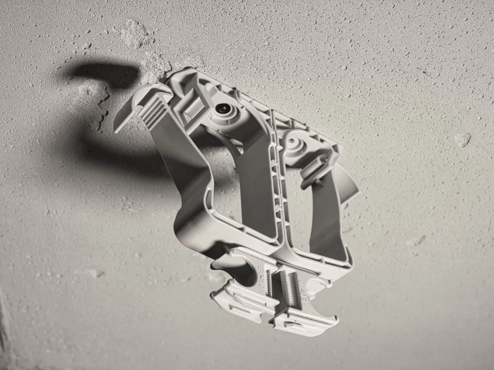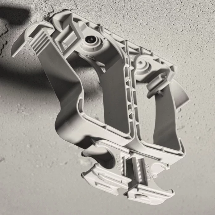- Plastic conduit clips can be attached to the holder allowing the support of cables and conduits using a single hole in the concrete