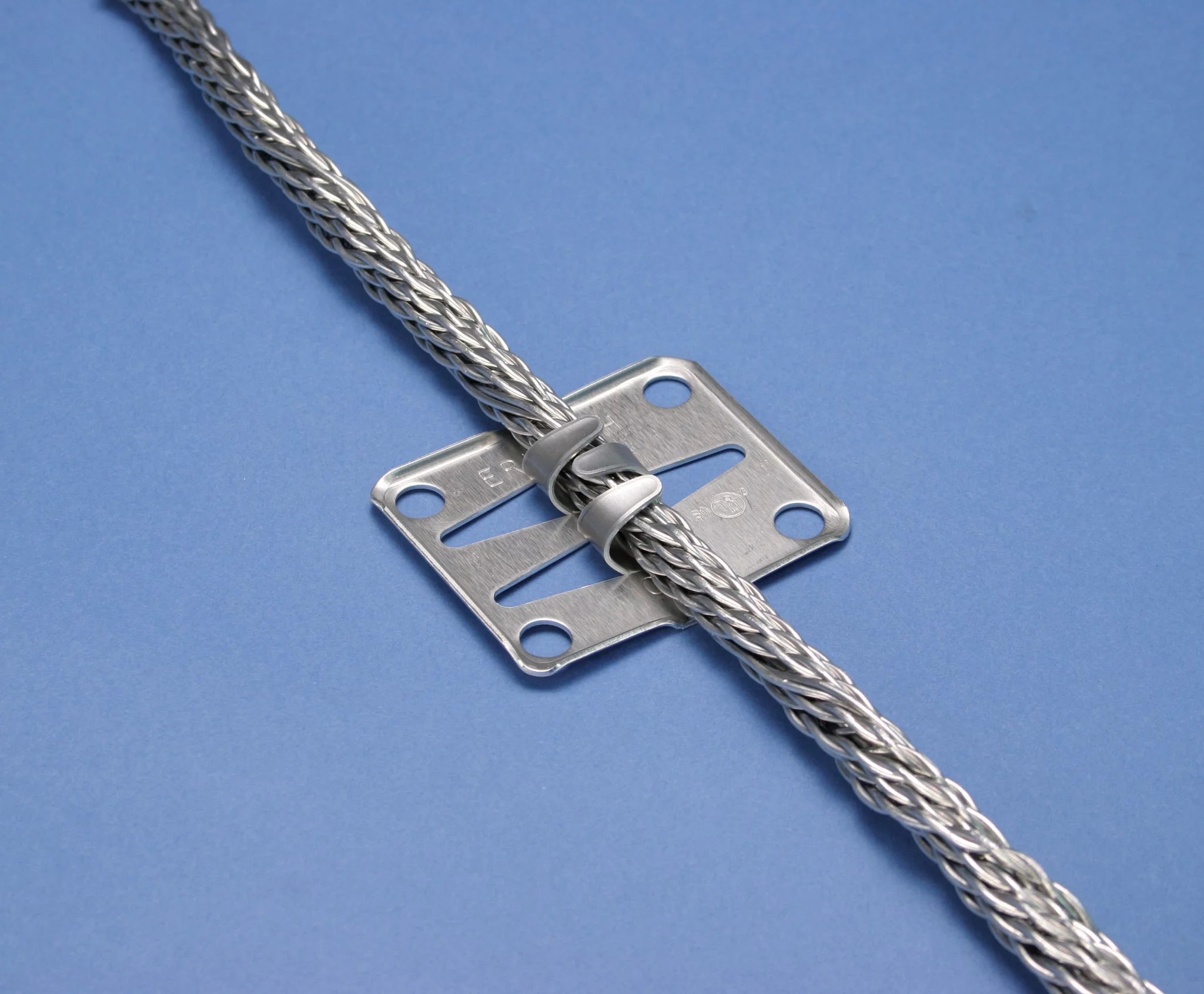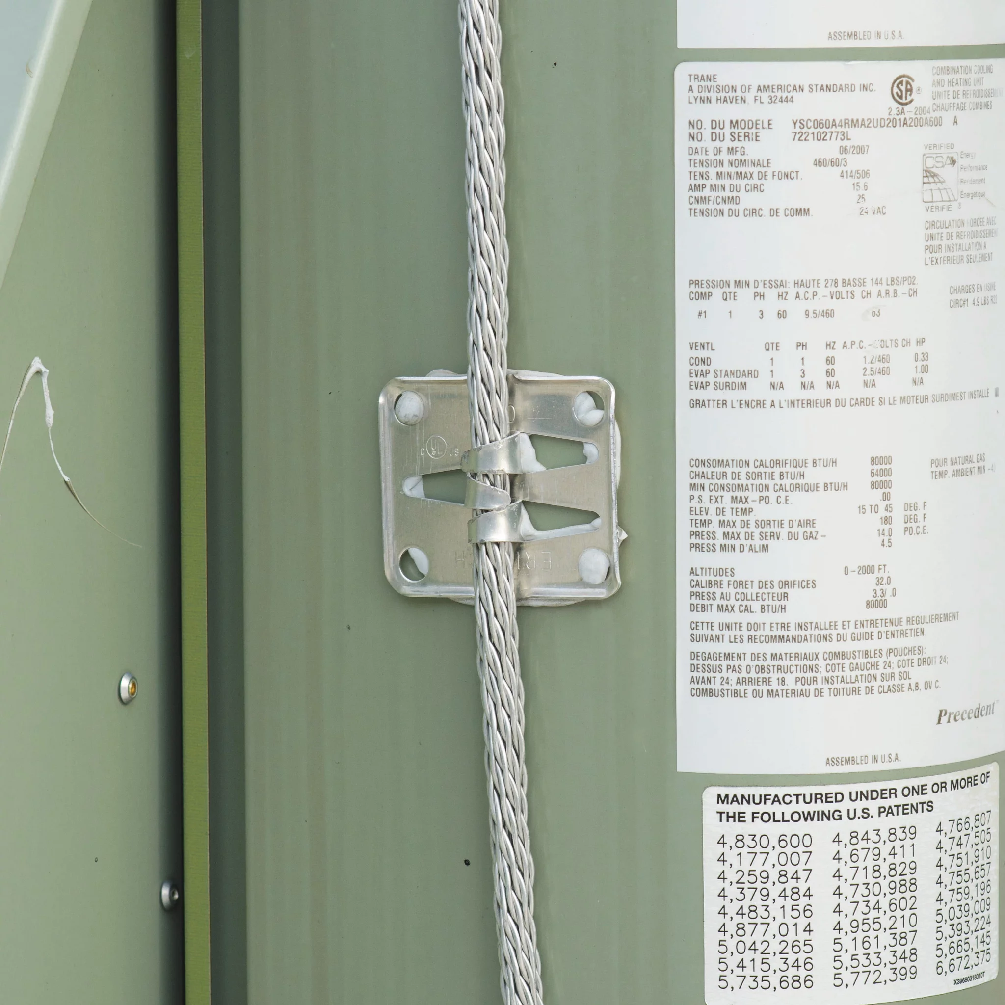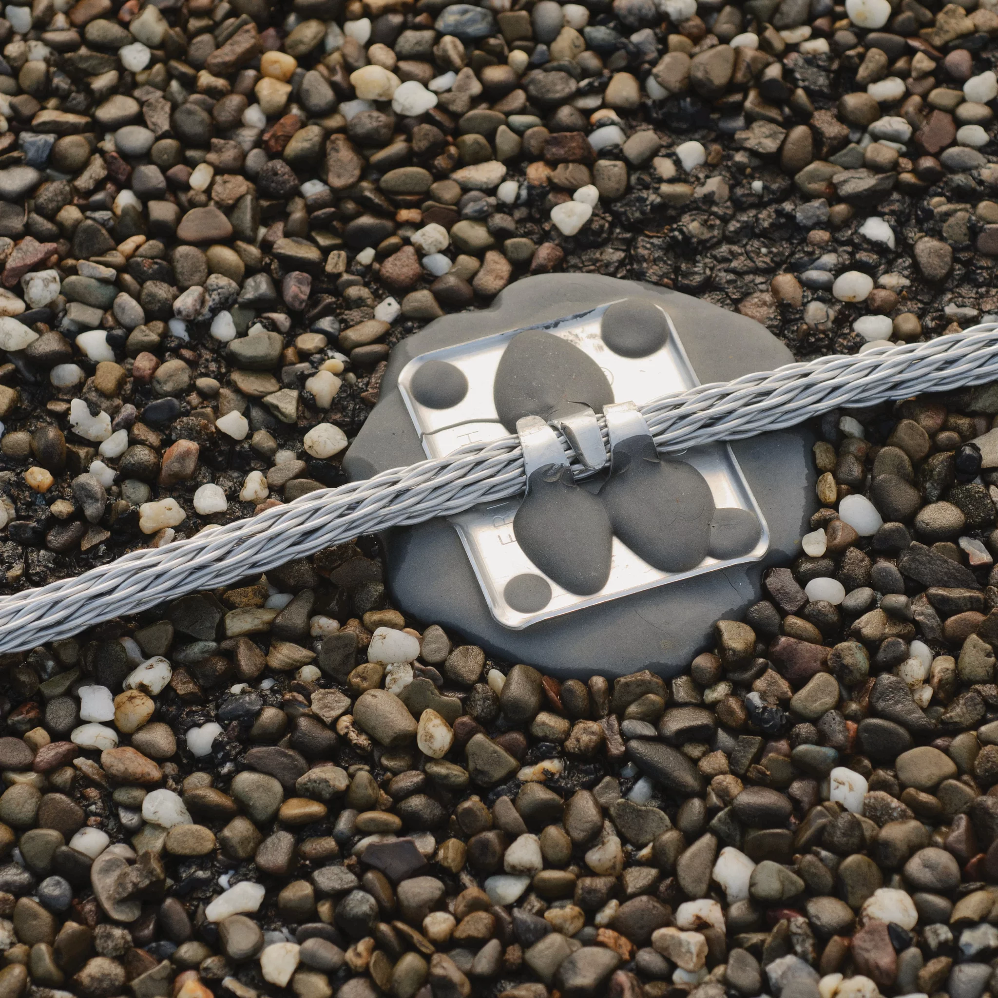 - Flat cable holder for use with hot pitch, roofing compound or commercial adhesive on built-up roof surfaces or other location where holes cannot be made for anchoring cable