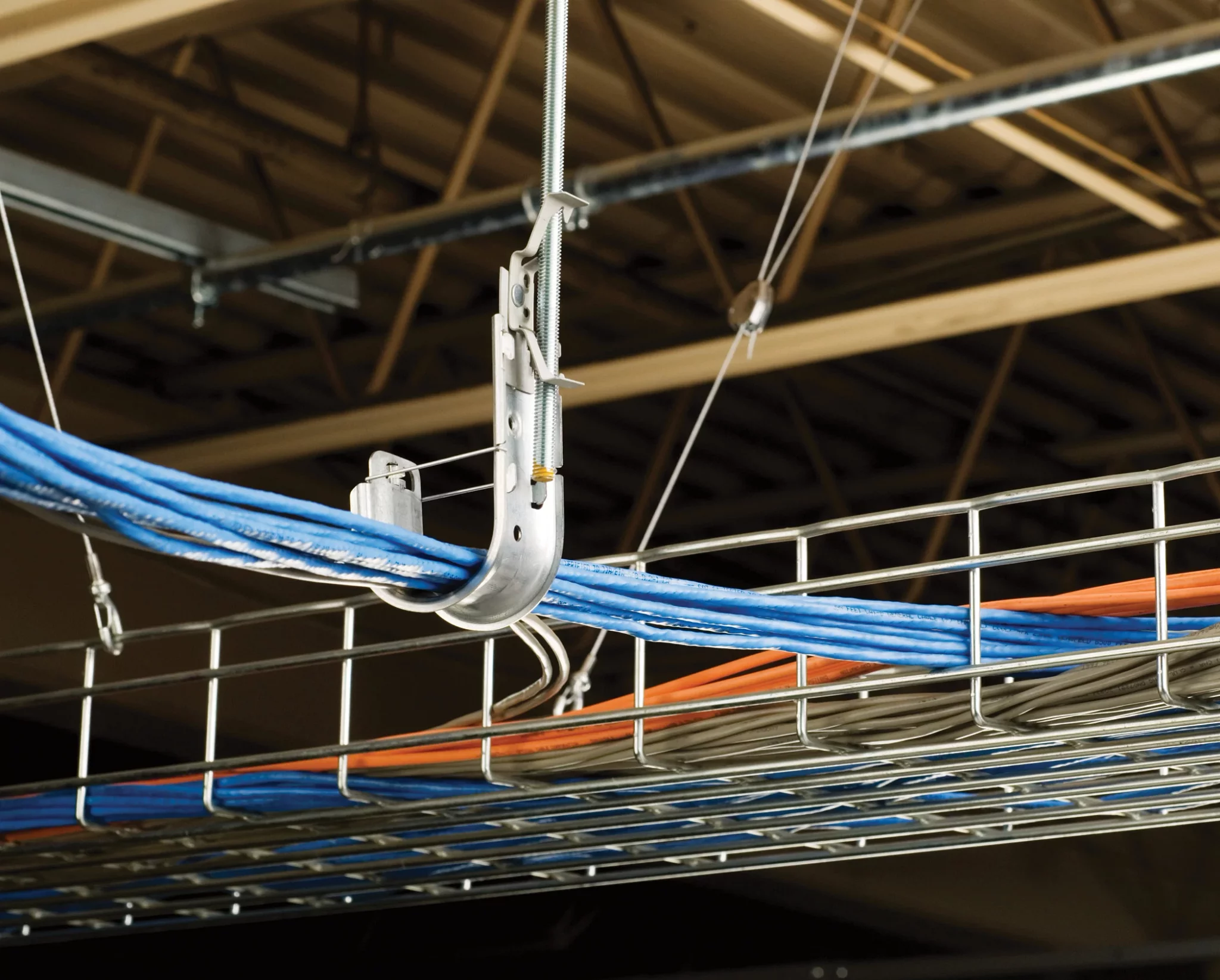 Los ganchos J nVent CADDY Cat HP son el corazón del sistema nVent CADDY Cat HP. Los ganchos J tienen un diseño con una base amplia y bordes biselados suaves para ofrecer un gran radio de curvatura para cables de datos y fibra óptica actuales y futuros de alto rendimiento. Los ganchos J nVent CADDY Cat HP están disponibles en un amplio rango de tamaños para ofrecer una solución que cumpla con las normas del sector para Cat 6A y pueden recibir fácilmente cable coaxial, Cat 7, fibra óptica de gran diámetro y conducto interior. Los ganchos J individuales nVent CADDY Cat HP se pueden sujetar directamente a la estructura del edificio o se pueden utilizar para extender los soportes de cables. Los ganchos J están diseñados para proporcionar una instalación con un soporte de vía resistente y estable.
