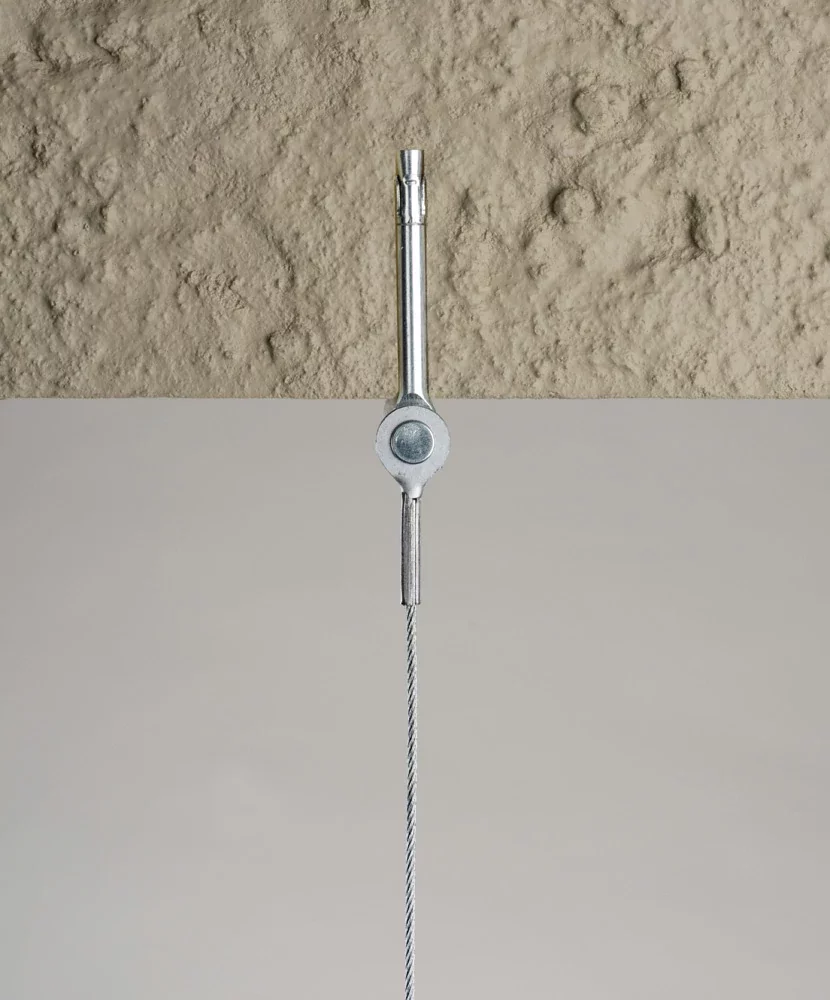 - El sistema completo incluye cable, dispositivo de bloqueo y anclaje de cuña de Powers Fasteners, Inc.