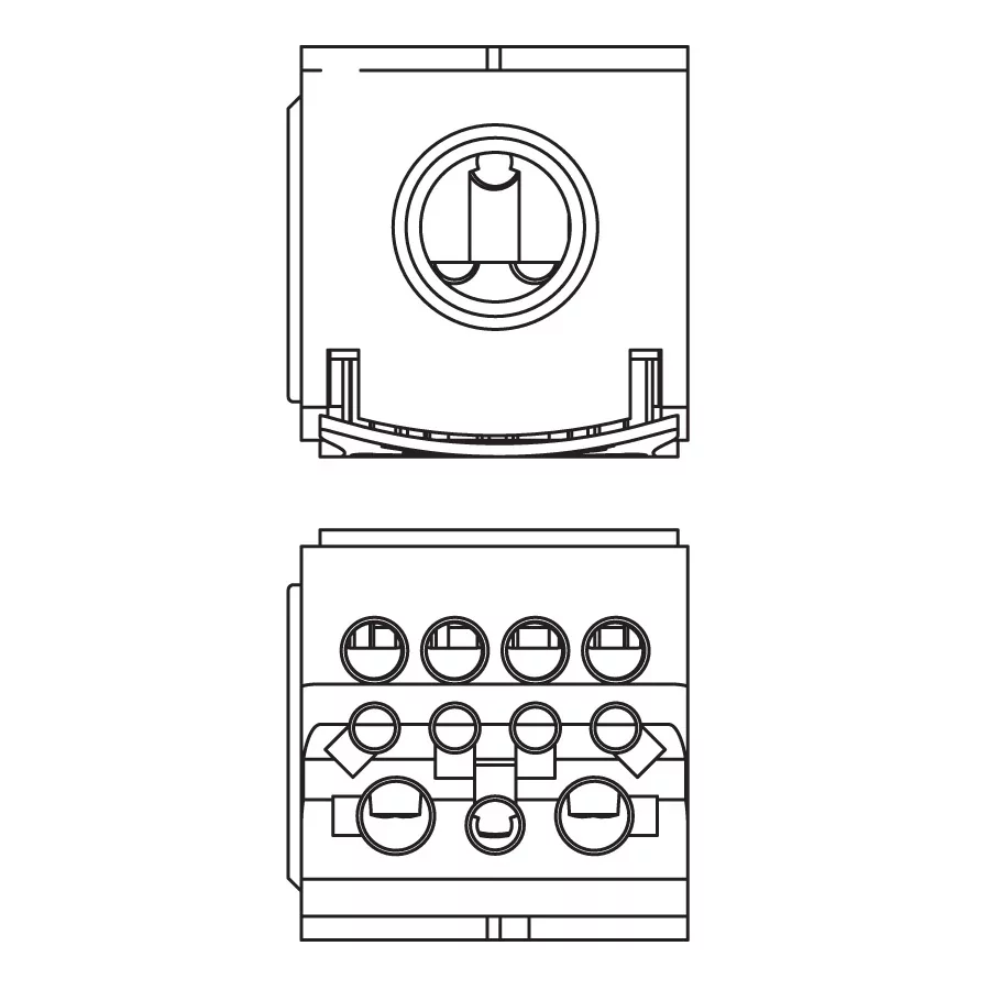 - Bloques de cobre estañado o aluminio, que permiten una conexión directa con conductores de cobre o aluminio, o el uso de terminales