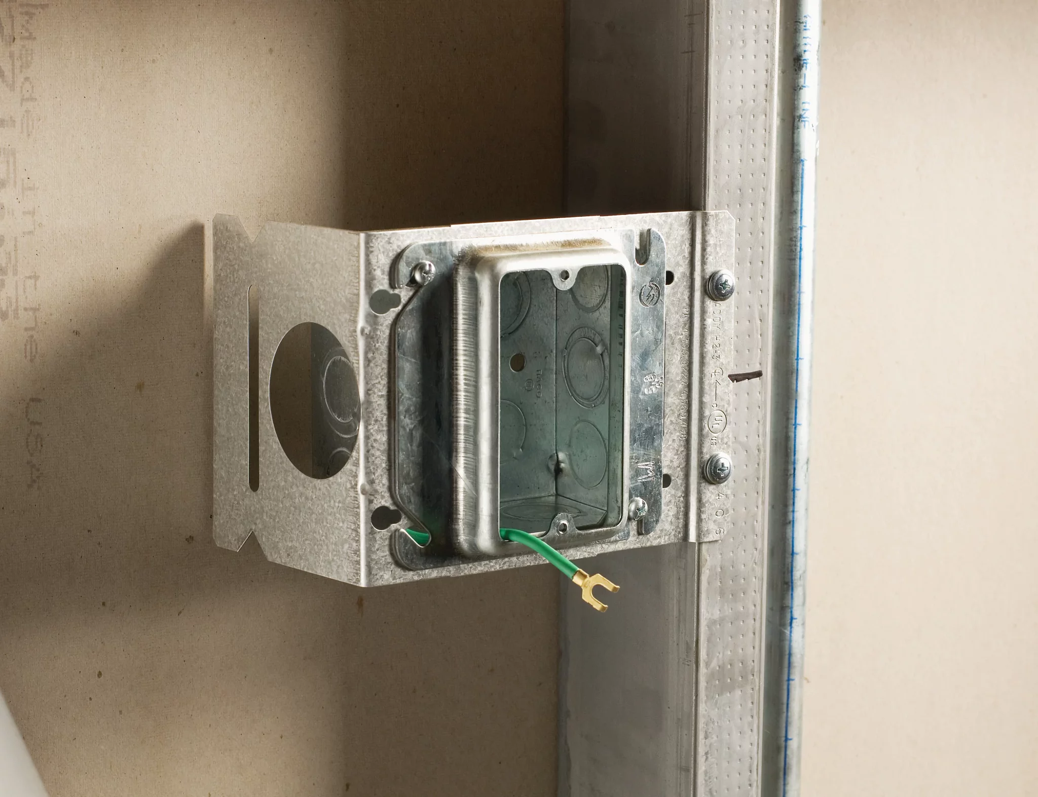 - Fixe facilement les boîtiers de sortie de 102 mm et de 119 mm sur les ossatures de cloison métalliques ou en bois